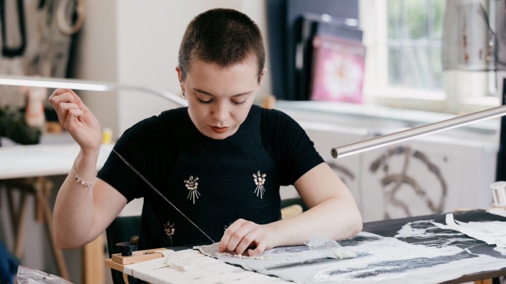 We deliver two specialist career development courses in Embroidery and Millinery on-site at Highgrove Gardens in partnership with CHANEL and le19M.