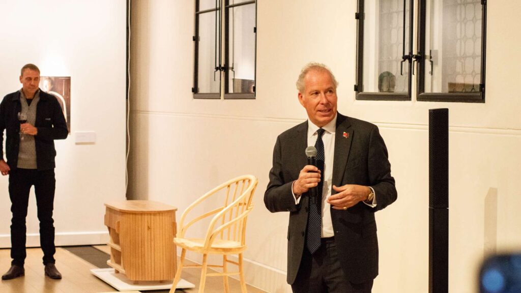 Lord Snowdon visited the gallery to see the work of the alumni from his namesake school. Lord Snowdon is a renowned furniture maker, establishing the Snowdon School in 2022, to help train the next generation of furniture designers and makers.
